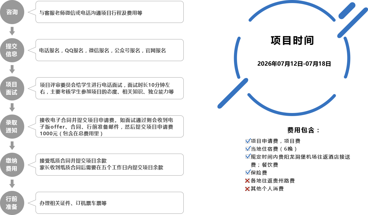 迷人的大山:在中国的西南腹地,有一片神奇的土地——贵州,那里的山、水、林、洞,天然生就,原始古朴,回归自然只需置身其中。贵州的山,层峦叠嶂,喀斯特溶洞遍布全省各地,可谓“无山不洞,无洞不奇”;贵州的水,蜿蜒于深峡幽谷,给这个山区省份增添了几分妩媚。教育现状:与其得天独厚的自然景观形成鲜明的对比,山区的孩子们对山外的世界充满了期望......我们将前往当地学校进行志愿助学,并进行文化交流及体验。 我们将为孩子们带去知识,生活常识等,在当地小学开展交流活动,拓展孩子们的视野,让孩子有更多阅读和了解外面世界的机会;给孩子们举办故事会,为他们描绘外面精彩的大千世界;陪伴他们做游戏、进行趣味运动会等,给他们的生活增添更多色彩。