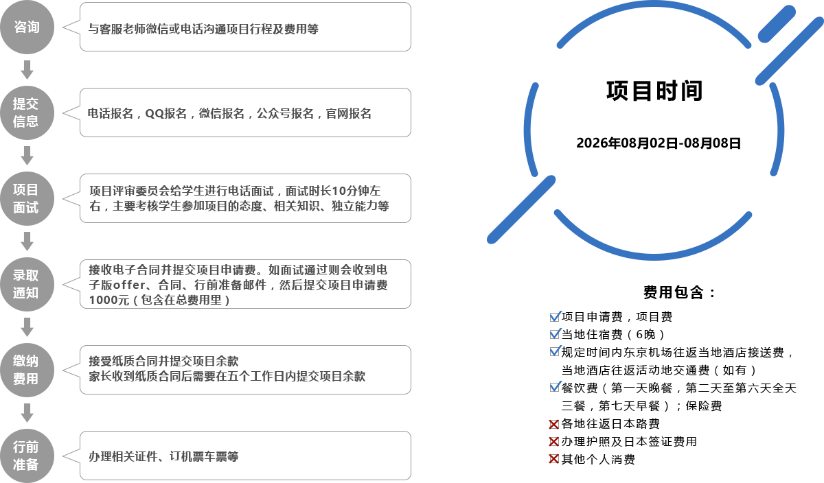 日本JAC动漫研习项目将动漫产业理论与实践相结合,由大师讲解日本动漫的发展与制作,实际体验动漫制作中的多个环节,走访多家动漫主题博物馆和机构,参访日本的世界名校,伴随哆啦A梦、火影忍者、海贼王、樱桃小丸子、龙猫、宠物小精灵、高达、蜡笔小新、EVA等等这些陪伴我们多年的名字,让我们一起走进日本,来一次梦幻般的动漫之旅吧!